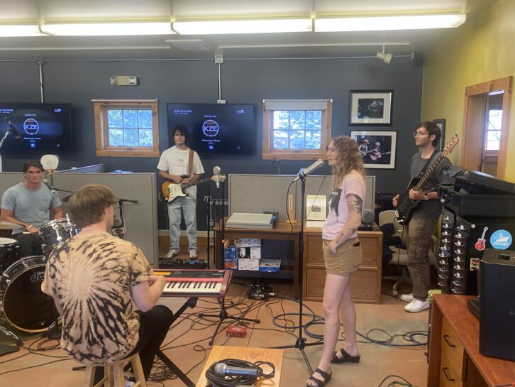 At 5 p.m., KZE’s afternoon DJ MK Scully kicked off the live set from the station’s broadcast center. The band performed five songs, including the Steely Dan favorite “Kid Charlemagne” from the 1976 album “The Royal Scam.”