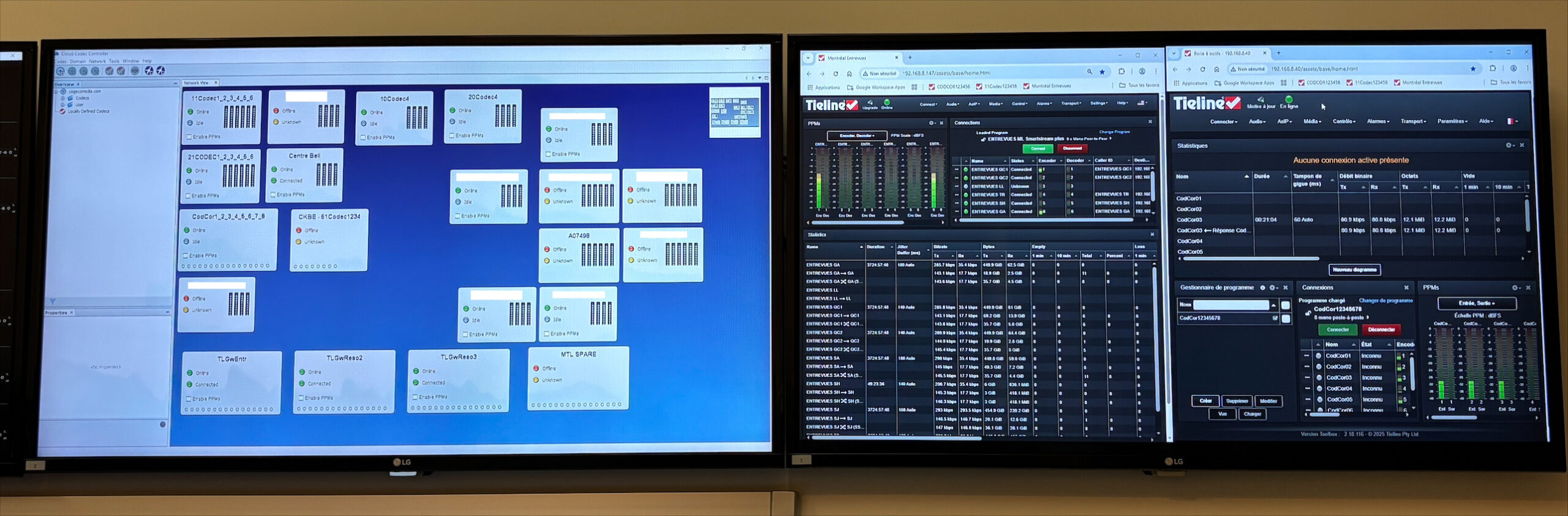 Two Gateways were installed in the eight cities of Montreal, Laval, Trois-Rivières, Sherbrooke, Gatineau, St-Jérôme, Chicoutimi and Québec. They replaced older Tieline Commander G3 codecs and Musicam USA codecs.